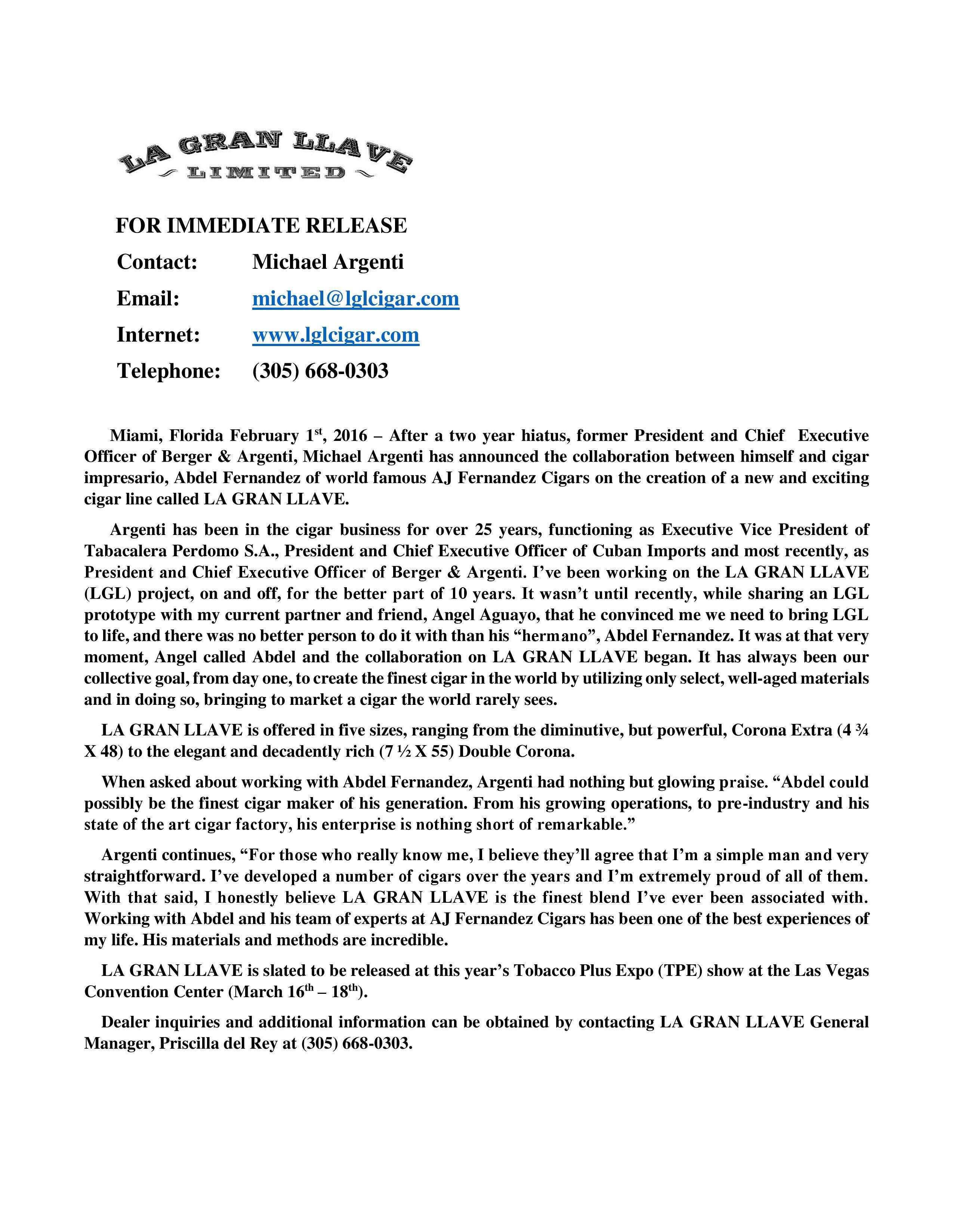 ‘press’ Published February 17, 2016 at 2550 × 3300 in Press Release: Michael Argenti Returns with La Gran Llave to be Released at IPCPR 2016 ‹ Back