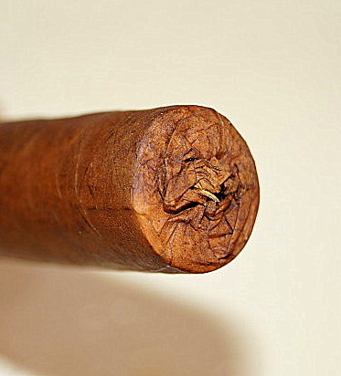 A slight tan colored wrapper with no aesthetically outstanding appeal. No shortage of veins. A couple of soft spots where the cigar is under filled. A nicely done triple cap with a closed foot.