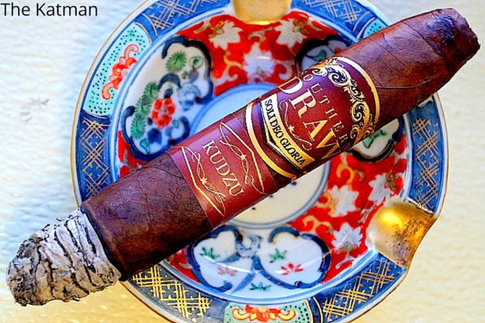 Strength hits full+. Yet the blend is so smooth that I’ve not passed out. Sophisticated smokers will go ga-ga over the Kudzu. And you newbies…give it a try. You have to raise your capacity for more complex cigars at some point so why not make it with a Southern Draw blend?