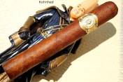 This is a nice looking stick with an oily tawny burnished maple wrapper. Very toothy. Seams are visible as well as being full of large veins and some bumps and lumps. The bottom half feels soft compared to the top half. The triple cap is nicely done. And the cigar band is reminiscent of a Cuban cigar.