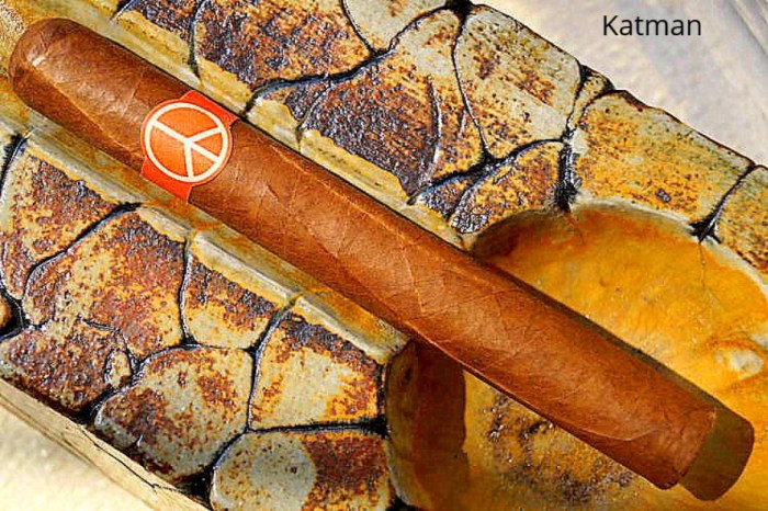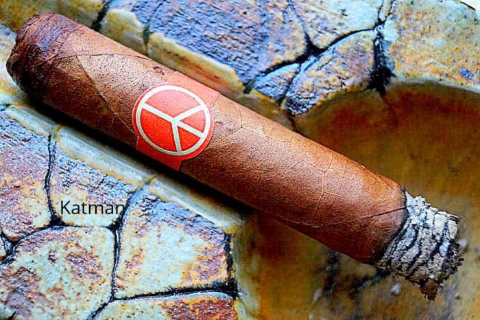 “The cigar became iconic for its simple packaging and banding, an orange-ish piece of paper bearing simply an off-white peace symbol, with the boxes plain and bearing the same symbol on a sticker with the word ONEOFF printed beneath it.