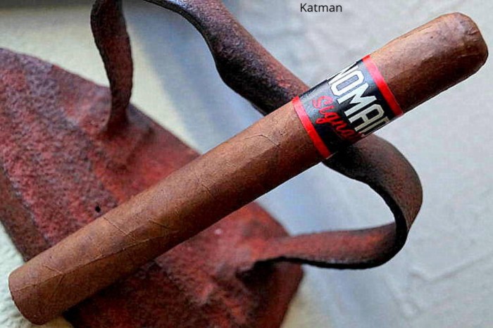 > The Katman posted: “Wrapper: Ecuadorian Maduro Binder: Ecuadorian Filler: > Nicaraguan, Dominican Size: 6 x 50 Strength: Medium/Full Price: $12.00 > Today we take a look at the Nomad Signature Toro. Samples were provided by > Fred Rewey. BACKGROUND: This was N” >
