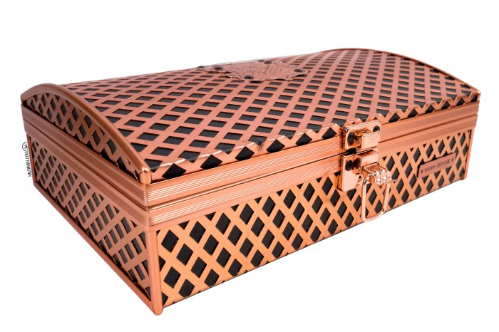 “While not accompanied by an elaborate backstory, the cigars did come in one of the more decorated boxes of the year, a bright, domed box encased by what could be called a metal cage or lattice design. Inside the box is a black cloth-lined interior with a badge indicating the brand attached to the inner part of the lid.