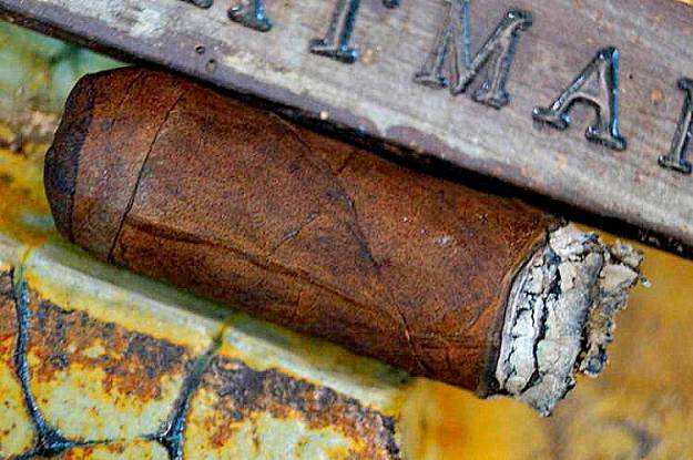 An oily, mottled mix of cocoa brown and espresso black, the stick is toothy with a nicely applied triple cap. The cigar has no soft or hard spots. Seams are visible but tight. The absence of a cigar band does not hurt the look of the cigar