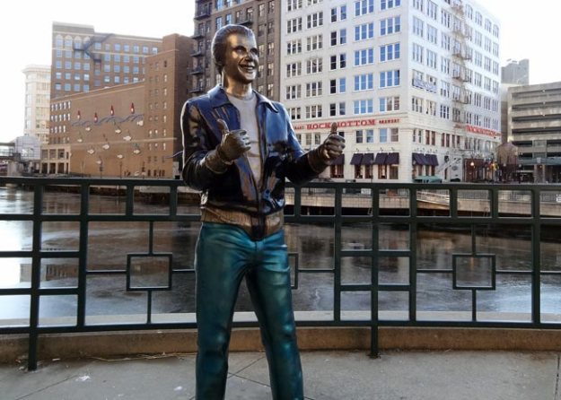 I proceed to put my PerfecDraw in the same place Jimmy Hoffa was buried. It is common knowledge here in Milwaukee. Hoffa was cut into 9 pieces and placed into the foundation underneath the Bronze Fonzi in downtown Milwaukee. Notice the lovely background…It is the state-of-the-art Milwaukee Cultural Center built in the early 1900’s. The waterway shown is the runoff from the Milwaukee Metropolitan Sewerage District. Local fisherman can be seen on these bridges bringing dinner home for the family. The fish are a natural deterrent to Covid.