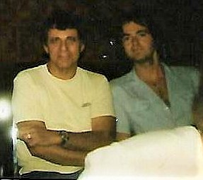 This is a terrible Kodak Instamatic photo of drummer Hal Blaine and me in my studio. I believe the white mass in the foreground was cocaine for the day. (I used to have hair on my chest).