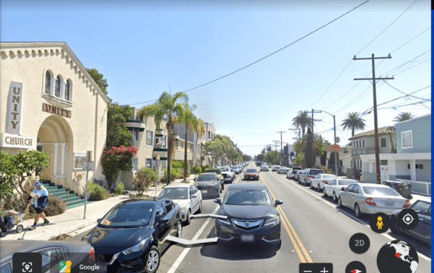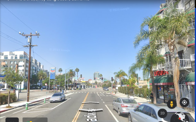 I used Google Earth to find my old recording studio in Long Beach. It looks so different after 40 years. The beauty supply store was the studio. We had the entire bottom floor all the way to the back of the building. The window front was my personal office. The spa building next to it was our rehearsal studio and ancillary offices. The second view is looking down at the street away from downtown. It has all changed. It was 4 story brownstone apartments with stoops. It was the gay section of Long Beach. The third view is looking towards downtown. The cross street led down to the marina where the Long Beach Gran Prix is held. We had to close for 4 days every year.