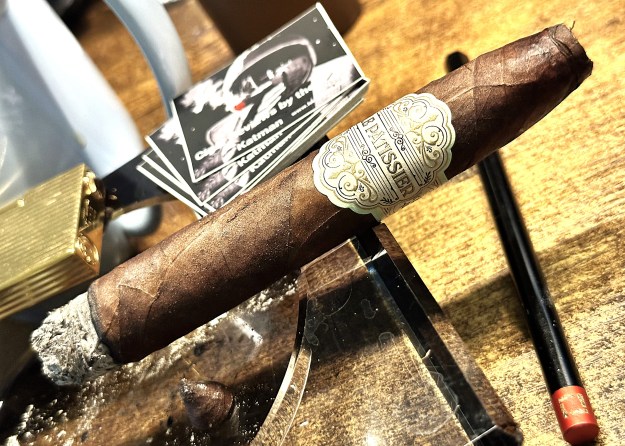 The wrapper engorges itself around my lips. (I’m still not gay). A stunning richness ensues…as in a ‘Boy Named ….’ I don’t recollect the Crowned Heads catalog brimming with deeply complex blends. They seem to parallel the AJ playbook. And there is nothing wrong with that road. The Le Pâtissier has an immediate impact with a causation that raises my eyebrows as if Groucho was here. Super smooth.