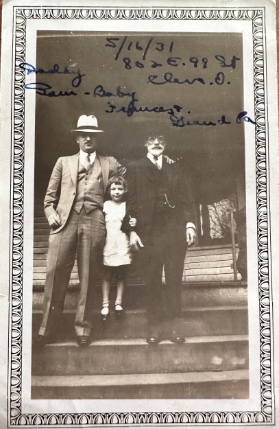 1931 photo of grandpa (and consigliere mob lawyer) Sam Siegel, my 5-year-old mother, and The Don: