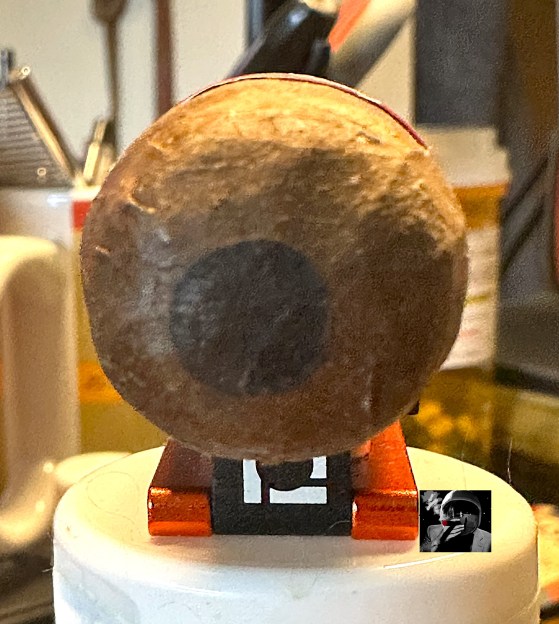 I am averse to cutting such a fine-looking cap. But since this isn’t an art show, I use my PerfecPunch to get me a souvenir of that itty bitty bull’s eye. No idea how I’m going to hold my elongated nutsack and take a photo simultaneously, but I’ll figure it out. This flagrant plug cost Dr. Rod a measly $1.37.