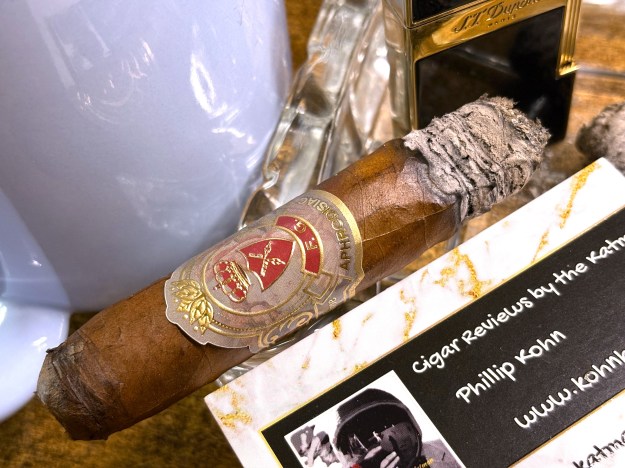 The rye toast continues while dripping custard from Fred Maug’s eye. Construction is excellent with a sharp char line. Oh right, this is a $24 cigar. It demands this sort of constitution.