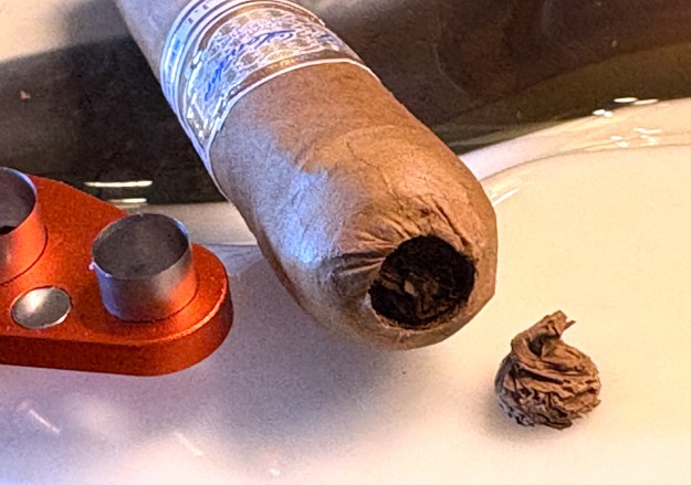 The first half ends. The progression is top notch. The only downside is when I get lucky with a cigar, I tend to puff too often. The palate needs a rest to truly enjoy what your double sawbuck bought you. Reviewers are better at preaching than doing.