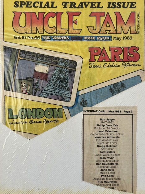 Strength is medium as advertised. Speaking of advertising, Phil Yeh, the owner of Uncle Jam, contacted me. Phil is an extraordinary cartoonist who is also the publisher and art director of the paper. This was the hippest of hip free newspapers in SoCal from the mid 70’s to modern day. I was associate music editor for the paper for a couple of years. He sent me several copies that contained my articles from the early 80’s. The big kahuna music editor hated my writing style. He wouldn’t speak to me. But I was wildly popular which pissed him off. Rings a bell.