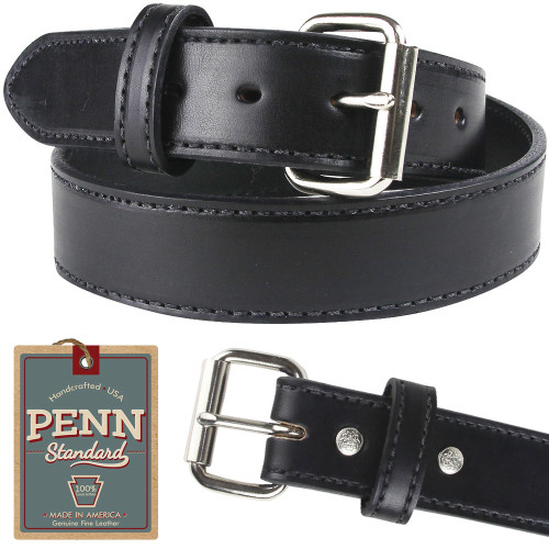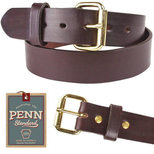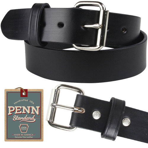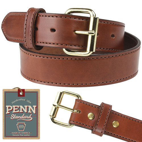 American-made Penn Standard Amish leather belts for a fraction of the cost. Starting with thick 100% full grain bridle, vegetable tanned USA leather the Amish leather workers carefully handcrafted these into highest quality leather belts I’ve seen. Each belt comes with a heavy duty stainless steel roller buckle and is screwed together using top-quality Chicago screws. The Chicago screws let you swap out the current buckle for your own buckle. Perfect for everyday use and CCW.