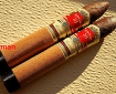Wrapper: Corojo ‘99 Binder: Undisclosed Filler: Ditto Size: 5.5 x 54? A wild guess. Hard to measure box pressed sticks. Body: Medium/Full Price: $12.00 Humidor Time: 2 weeks Number of cigars smoked prior to review: 0 Photos courtesy of Ezra… Read More ›